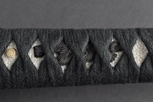 • Wooden handle wrapped w/ray skin & brown cotton cord w/ Dragon menuki