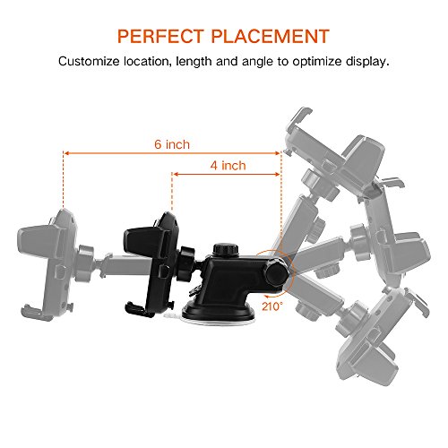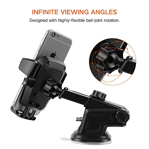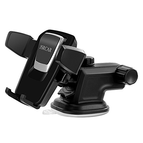 JSRCAR Phone Holder for Car, Universal Car Windshield / Dashboard Phone Mount Holder with One-Touch Design for iPhone X/8/8 Plus/7/7 Plus/6S/6S Plus, Galaxy S8/S8 Plus/S7/S7 Edge/S6 and More - Black
