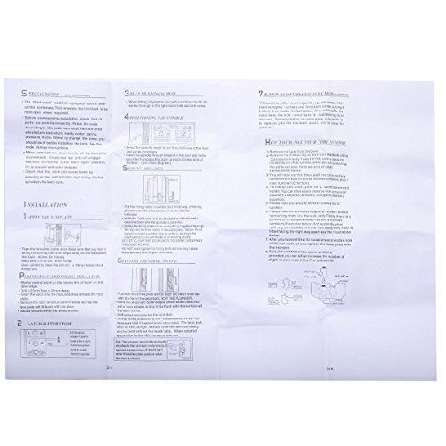 -. Feature : Safe and reliable with zinc alloy integrative structure / Fit door thickness: 35-60mm, suitable for wooden doors and steel doors, Not for standard door hole, Must be used on a new (uncut) door / Very easy to operate, easy to installation / Opened by code, great for office use, home or apartment / Caution:please read the instruction thoroughly before using the unit.please retain this manual for future reference