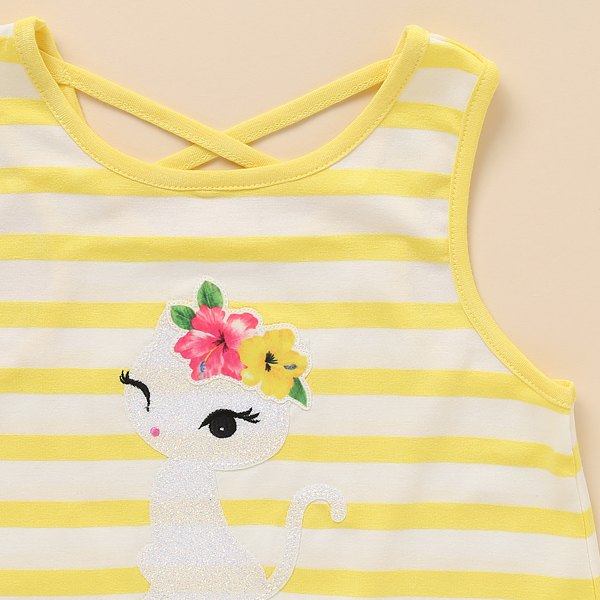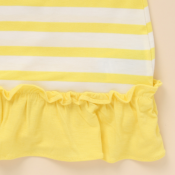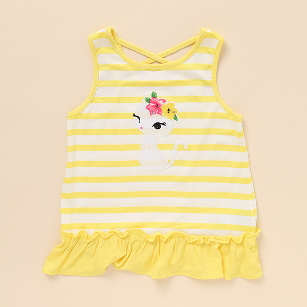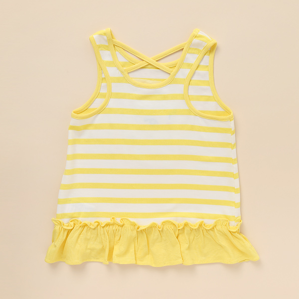 노랑 민소매스트라이프티셔츠로 끝단의 프릴이 예쁘고