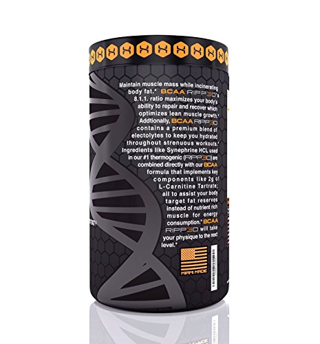 BCAA RIPP3D Helix Nutrition's BCAA RIPP3D has become an industry leader from the second it was introduced. Our proprietary blend of the 8:1:1 Matrix is the optimum ratio of Branched-Chain Amino Acids. BCAA RIPP3D 8:1:1 Matrix 8 parts L-Leucine : 1 part L-Iso-Leucine : 1 part Valine What are BCAAs? Branched Chain Amino Acids are essential amino acids that can be obtained naturally via different food sources like meats, dairy products, and eggs. But it is used in supplement form to maximize optimum uptake of very specific Amino Acids in a beneficial ratio. BCAAs have been shown to increase muscle growth via protein synthesis, stimulate muscle recovery, and increase glucose uptake into the cell for the promotion of cellular energy. Why is BCAA RIPP3D Special? We have optimized the ratio of the essential Amino Acids Leucine, IsoLeucine, and Valine. The 8:1:1 ratio ensures that protein synthesis is at its peak performance. Our formula also has a dose of glutamine and L-Carnitine Tartrate for additional recovery and circulation benefits. Last but not least, the flavoring is out of this world!!!Feature