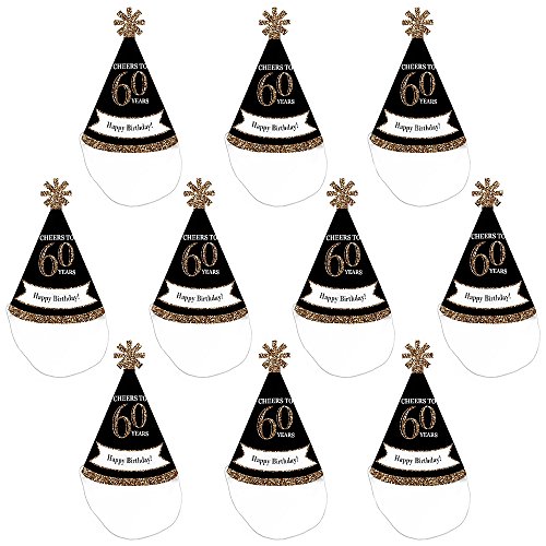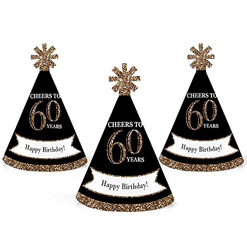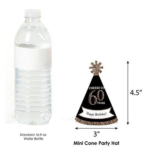 -. Feature : Adult 60th Birthday - Gold Mini Party Hats INCLUDES 10 Adult 60th Birthday - Gold party hats with elastic chin straps. Mini birthday party hats will fit both children and adults. / 10 Adult 60th Birthday - Gold party hats SIZE 4.5 inches tall and 3 inches in diameter at the base. The included elastic chin straps measure 12 inches long. These cute sixty birthday party accessories feature a unique star cut-out decoration at the top and the P.R.Inted saying "Happy Birthday!". / FUN 60TH BIRTHDAY PARTY ACCESSORIES: Adult 60th Birthday - Gold mini party hats are perfect for your black and gold party. This set of cute tiny party hats will help you take adorable birthday photos. Best of all, mini party hats are perfectly sized for adults, kids, and even pets, so everyone can get in on the photo fun. Little party hats are sure to be enjoyed by all your friends and family! / PREMIUM MINI PARTY HATS: Set of 10 Adult 60th Birthday - Gold mini party hats are professionally P.R.Inted on heavy-duty card stock paper with a photo-like shine. They are individually inspected, then carefully packaged. Adult 60th Birthday - Gold mini cone birthday party hats will arrive flat, with the chin straps attached. Easy assembly is required. Simply roll the party hat into a cone shape and slide the tab into the slot to secure. / MADE IN THE USA: Adult 60th Birthday - Gold - Mini Cone Birthday Party Hats are designed and manufactured at our Wisconsin facility using materials that are Made in the USA. 60th Birthday Mini Cone Party Hats use a No-Mess Glitter P.R.Int: Our small cone party hats are designed with a P.R.Inted image of glitter, eliminating glitter flake while maximizing bling effect!