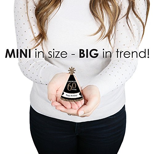 -. Title : Adult 60th Birthday - Gold - Mini Cone Birthday Party Hats - Small Little Party Hats - Set of 10