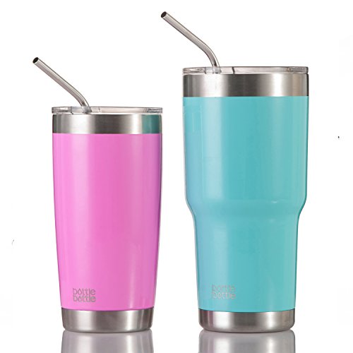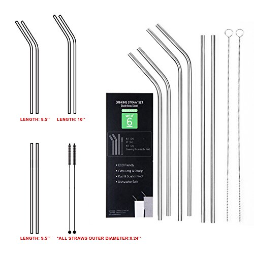 Bottlebottle Stainless Steel Drinking Straws - Resusable BPA Free Long Metal Straw Set of 6, for 20 & 30 oz Tumbler Cup - 4 Bent + 2 Straight + 2 Free Cleaning Brush - Fit Yeti, Rtic, Ozark Trail