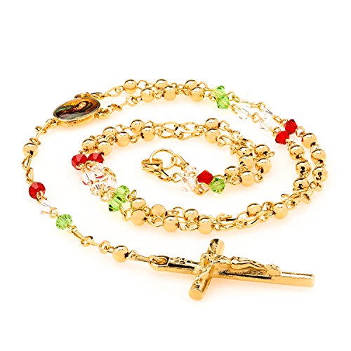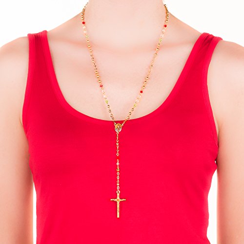 -. Title : Rosary Beads Catholic Necklace, Mary, 24K Gold Plate, Crystal, Christian Jesus Crucifix,LIFETIME WARRANTY