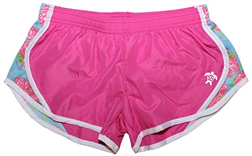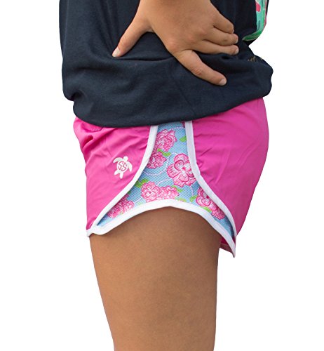 -. Title : Simply Southern Gym Short - Pink with Roses Trim