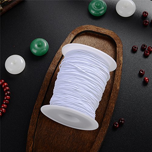 Tubala 0.8 mm Elastic Cord Stretch Thread Beading Cord Fabric Crafting Thread White Elastic String for Jewelry Making Bracelet Beading Thread, 100 Meters