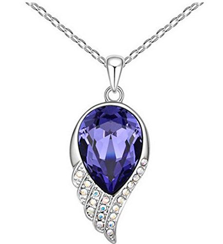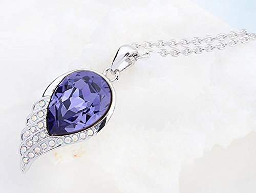 -. Title : Sojewe Silver tone Angel Fly Wing Pendant Necklace Purple Swarovski Elements Crystal 18" Chain for Women