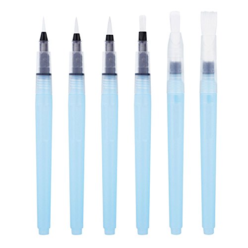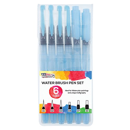 U.S. Art Supply 6-Piece Water Coloring Brush Pen Set (Sizes - 01, 02, 03, 04, 07,& 10) - Refillable, Watercolor, Calligraphy, Painting