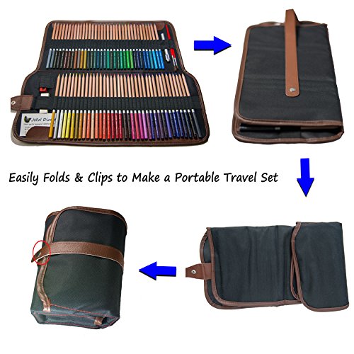 JNW Direct Watercolor Pencils, Best Water Soluble Colored Pencil Set for Adult Coloring Books and All Color Pencil Art, Includes 72 Different Luxury Colors with BONUS Canvas Case and Accessories