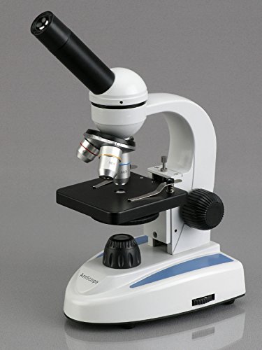 AmScope M149C-PB10-WM Compound Monocular Microscope, WF10x and WF25x Eyepieces, 40x-1000x Magnification, LED Illumination, Brightfield, Single-Lens Condenser, Plain Stage, 110V or Battery-Powered, Heavy-Duty Metal Frame, Includes 5 Blank Slides, 5 Prepare
