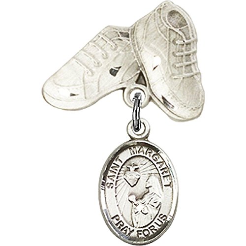 -. Title : Sterling Silver Baby Badge with St. Margaret Mary Alacoque Charm and Baby Boots Pin 1 X 5/8 inches