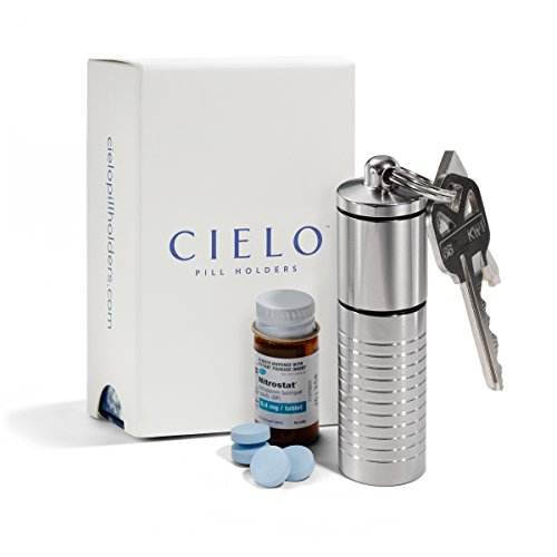 SPECS: [Diameter - 0.75 inches] [Height - 3.1 inches] Protects a bottle of Nitroglycerin (25 ct) in the bottom chamber & aspirin in the top.