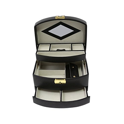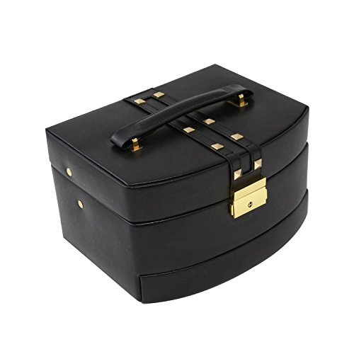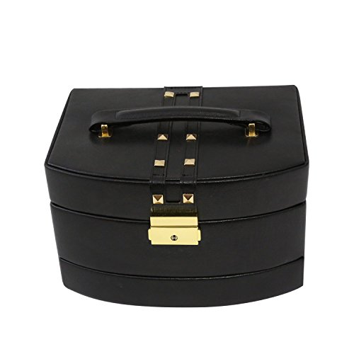 Time Factory AJ-BB644BLK 3 Level Hinged Leather Jewelry Box with Studs, Black