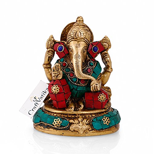 Hindu God Lord Ganesha Statue Handmade Brass Religious Sculpture Home Décor Showpiece. Size : 5.5 Inches Height X 4 Inches wide X 3 Inches depth.Weight : 1.2 Kg. Material : Brass.