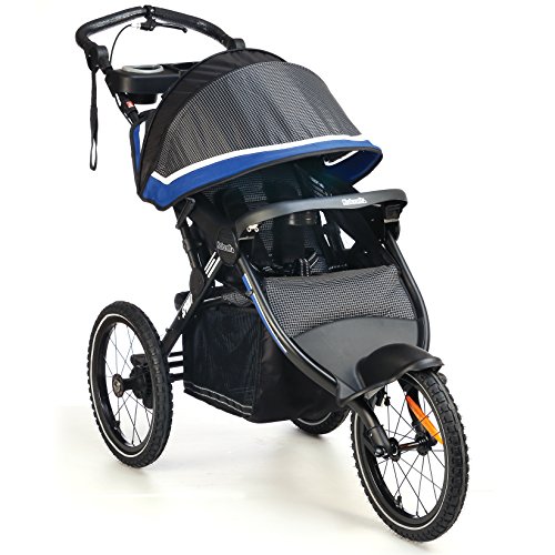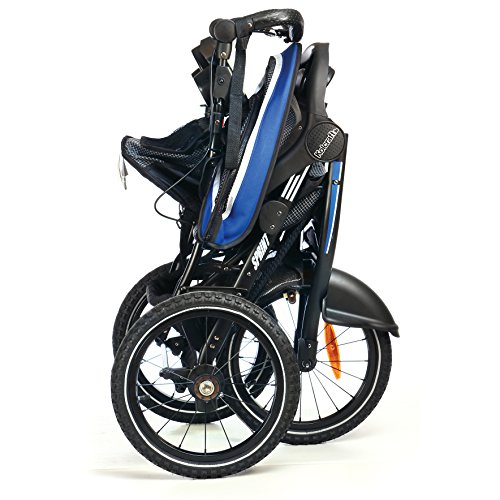 -. Feature : Permanently fixed, wobble-free, front wheel for optimal running performance conditions / 16 inch air-filled rear wheels with precision ball-bearings and aerodynamic, lightweight aluminum frame makes the jogger easy to push / Reflective wheel trim, hand brake and jogging tether to ensure your run is as safe as possible / Parent tray includes 2 deep cup holders and storage area / Smart Handle height adjust so you can customize to fit your stride / Fixed front wheel with aerodynamic design for optimal running conditions / Lightweight aluminum frame for better control and hand brake for better stopping while running / Safety tether and reflectors on wheels using 16" air filled tires for a better ride