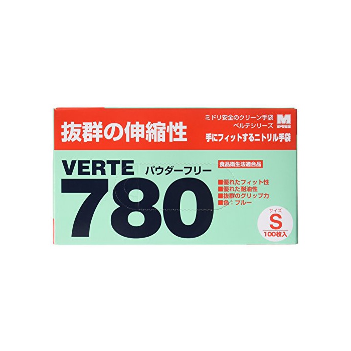원본상품명: ミドリ安全 ニトリルディスポ手袋 ベルテ780N 粉なし 100枚入(極薄滑り止め)