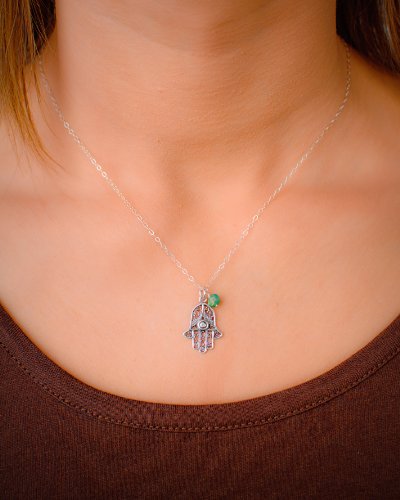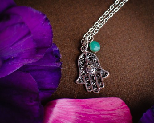 -. Binding : Jewelry -. Brand : Efy Tal Jewelry -. Department : womens -. Feature : DESCRIPTION: Filigree Hamsa Charm Necklace with lovely light blue/green stone. Comes beautifully gift wrapped ready for gift giving / MATERIALS: Sterling silver with light blue/green stone / DIMENSIONS: Length: 18" - This length works for just about everyone! Pendant - 3/4" x 5/8'' (1.8cm x 1.5cm) / MADE IN USA: right here in our studio in Glen Rock New Jersey / GUARANTEE: Love this or your money back! 2 year warrantee on chain -. Label : Efy Tal -. Manufacturer : Efy Tal -. Model : 100i -. MPN : 100i -. PartNumber : 100i -. ProductGroup : Jewelry -. ProductTypeName : FASHIONNECKLACEBRACELETANKLET -. Publisher : Efy Tal -. Studio : Efy Tal -. Title : Sterling Silver Hamsa Filigree Necklace with Blue Stone, Lucky Protection for Evil Eye