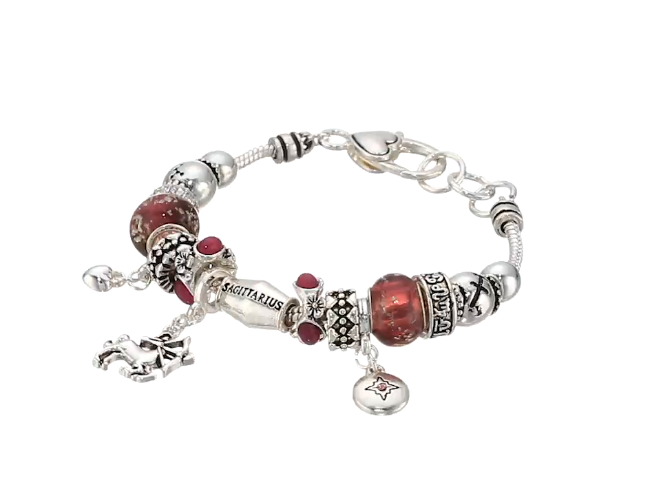 Sagittarius Zodiac Sign Silver Tone Charm Bracelet