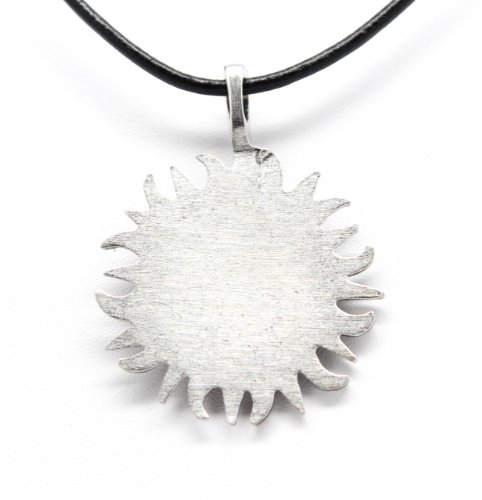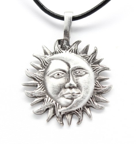 -. Title : Pewter Sun Moon Face Celestial Lunar Solar Pendant, Leather Necklace