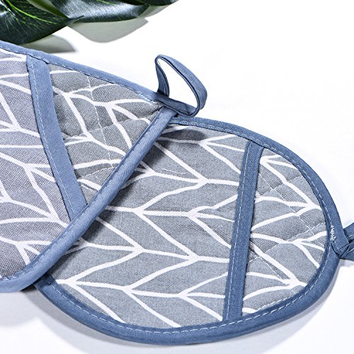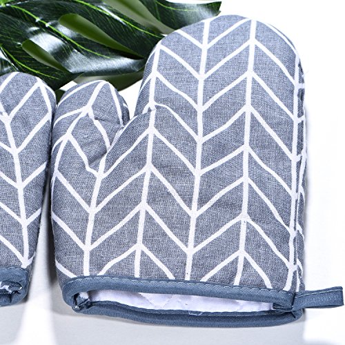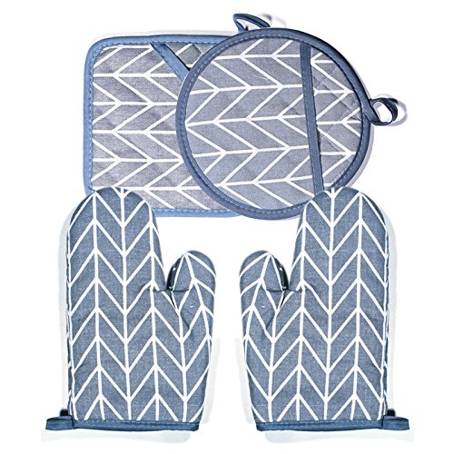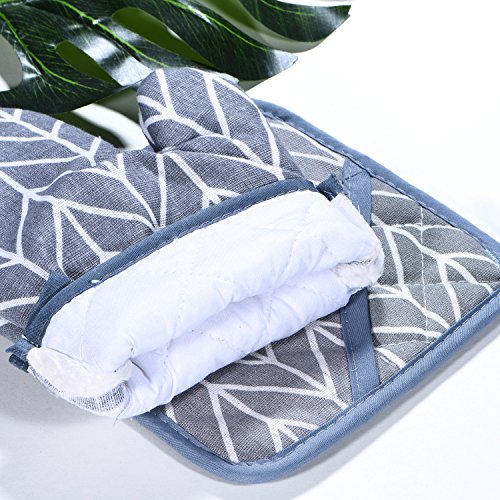 Oven Mitt & Pot Holder Set 100% Cotton,Oven Mitts Heat Resistant Cooking Gloves (Gray)
