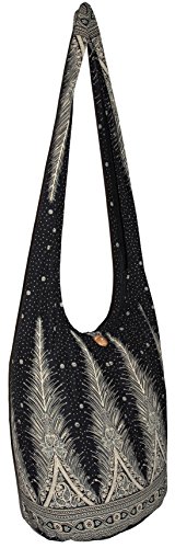 Black Yellow Feather Bohemian Sling Bag Crossbody Shoulder Purse Hippie Hobo Gypsy