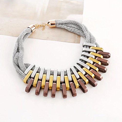 -. Title : Women Punk Gold Acrylic Pendant, Knit Multilayer Twist Chain Choker Necklaces