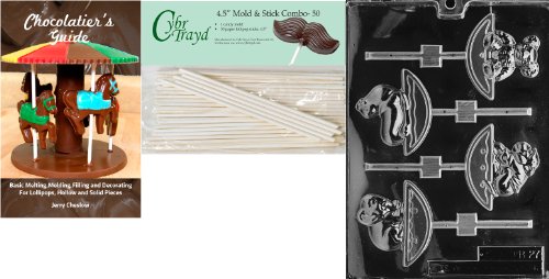 Cybrtrayd 'Assorted Rocking Animal Lolly' Baby Chocolate Candy Mold with 50 4.5-Inch Lollipop Sticks and Chocolatier's Guide