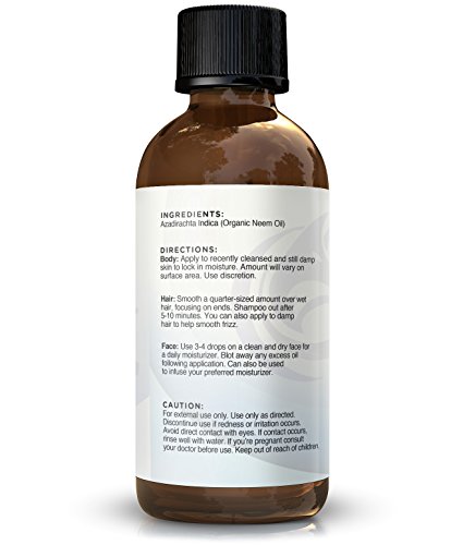 HIGH QUALITY, NUTRIENT RICH, NATURAL & ORGANIC - Know what you're putting on your skin and body. Never compromise when the highest quality natural oil is available today. Our Organic Neem Oil is abundant in essential fatty acids, Vitamin E, antioxidants and anti-inflamatory properties that work to fade fine lines and wrinkles, treat acne, promote hair growth, heal scars and stretch marks and deeply hydrate skin.