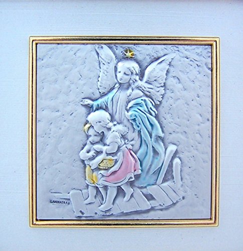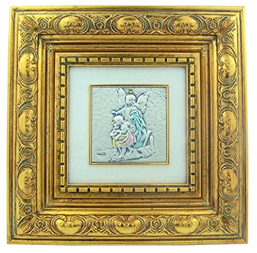 Guardian Angel with Children Icon Image in Gold Leaf Resin Frame, 5 3/4 Inch