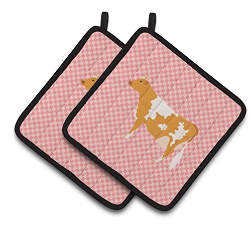 Caroline's Treasures BB7821PTHD Guernsey Cow Pink Check Decorated Pot Holder, 7.5" x 7.5", Multicolor