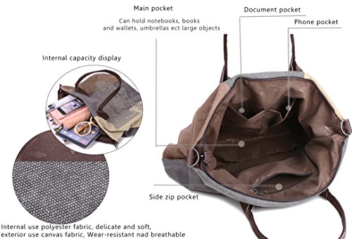 - High-quality Material -- Fine canvas & Leather, Eco-friendly casual life style, The fabric feels more soft and skin-friendly,canvas100% cotton canvas handbag, Wear-resistant, Durable and fashionable.