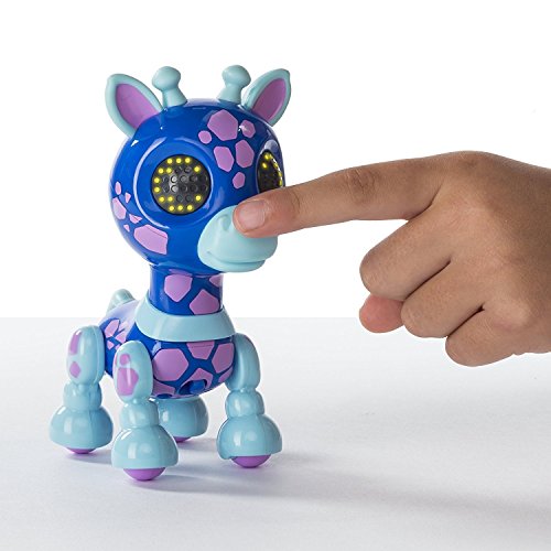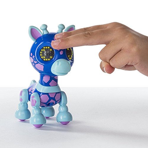 Introducing Zoomer Zupps Safari Rafa, the newest pocket-sized interactive friend that fits in the palm of your hand. This safari themed giraffe is ready for adventures. Complete with poseable limbs, light-up LED eyes and responsiveness to touch, Rafa is always ready to play! Press Rafas nose or pet the top of its head and hear adorable sounds. Listen as it interacts with you, send kisses and maybe even tells you I love you. But leave your Safari Zupp alone for too long and you may hear whimpers. Each Tiny Zupp has a secret trick! Play the Rocking Repeat Game by pressing its nose and petting its head at the same time. The eyes will flash in a specific pattern. Press the nose to repeat the pattern. Get three patterns in a row correct to win the game! With six new Zoomer Safari Zupps to adopt and a collector card to learn about each Zupps unique personality, kids will want to bring them all home.Feature
