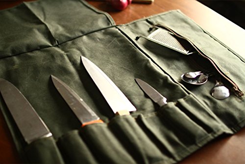 Handmade Waxed Canvas and Leather Roll-up Tool Bag (Fatigue Green)