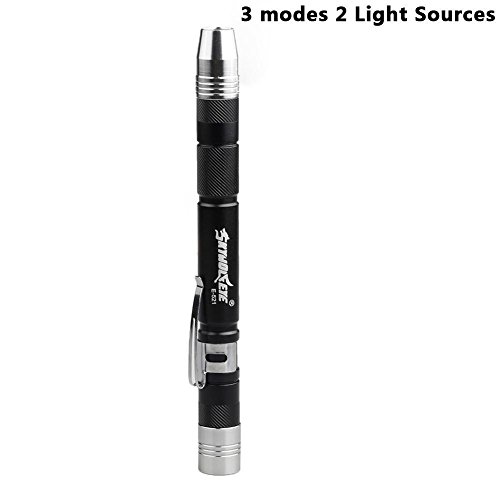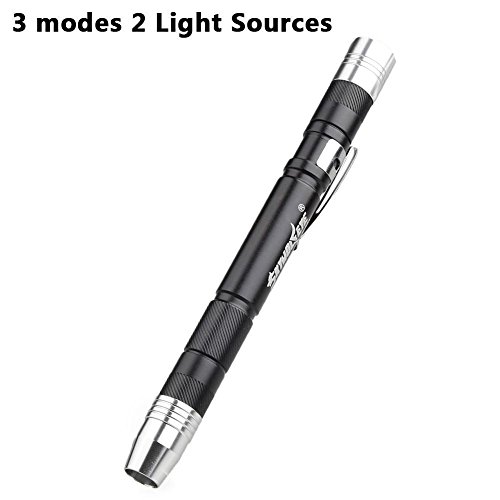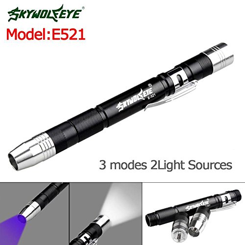 Unique 2 light source led flashlight, one is white light, one is Ultraviolet light, Easily Spot Scorpions, Authenticate currency, Official Identification cards, Passports, Pet Urine Detector,great for doctor,etc.