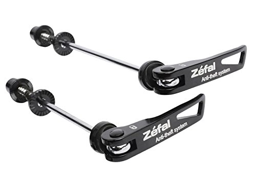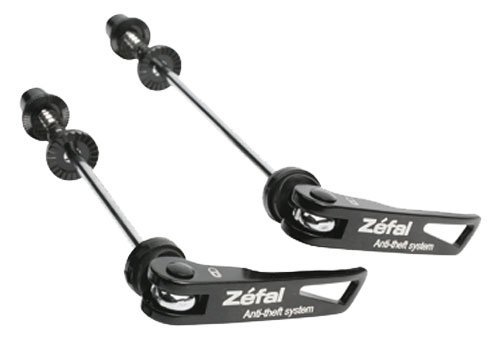 ReleaseDate : 2008-12-12 Studio : Zefal Publisher : Zefal Binding : Sports Product Description Skewer set for front and rear wheel. Prevents theft of wheels while bike locked up. Bike must be flipped upside down to unlock. Patented system keeps skewer from being turned to open. 0