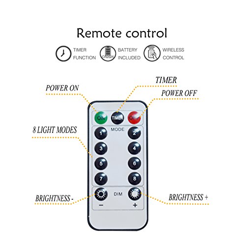 - ★ Multifunction Remote Control: A remote control can simultaneously control multiple 50 LED glimmer string lights which with 8 options of fun twinkle lighting modes. So you can easily design your romantic style.