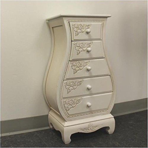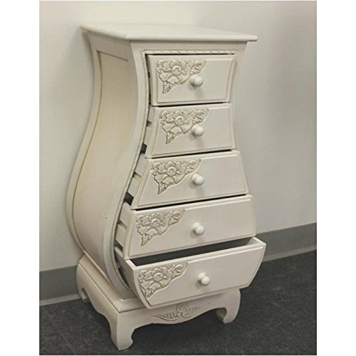Studio : Bowery Hill Publisher : Bowery Hill Product Description This hand carved chest comes with?five drawers that are great for all those small items that you need a place for.??Features: Finish: Antique White; Materials: Hardwood; Hand carved chest?; Five drawers. Specifications: Overall Product Dimensions: 31"H x 12"W x 17"D; Weight: 28 lbs. 0