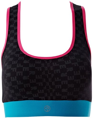 Reflective ZUMBA logo printed on front and back band Flat seam construction minimizes chafing Unique T back panel All-over "Feel Free" fabric print This bra is best for minimal impact Brand : Zumba Fitness Item model num : Z1T00176 EAN : 0797734772869