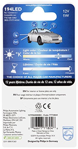 The new Philips Vision LED interior lights provide a 6000K bright white light and a wide beam angle to illuminate your interior in style. This interior LED can be used for interior (dome light, trunk, glove compartment) and license plate lighting applications.
