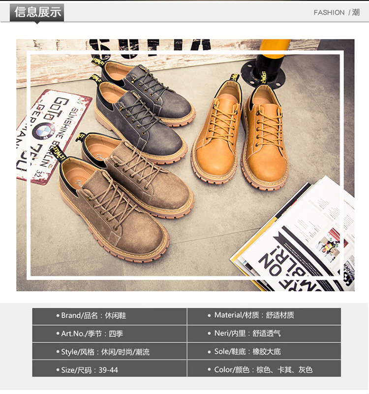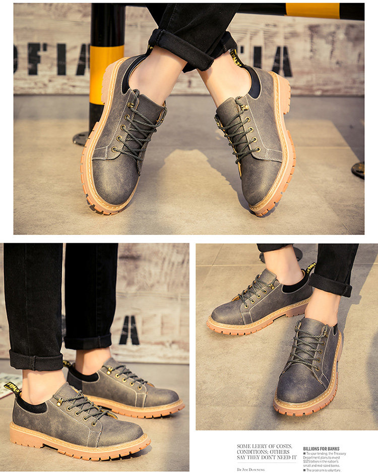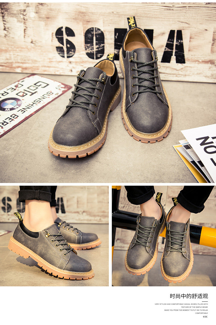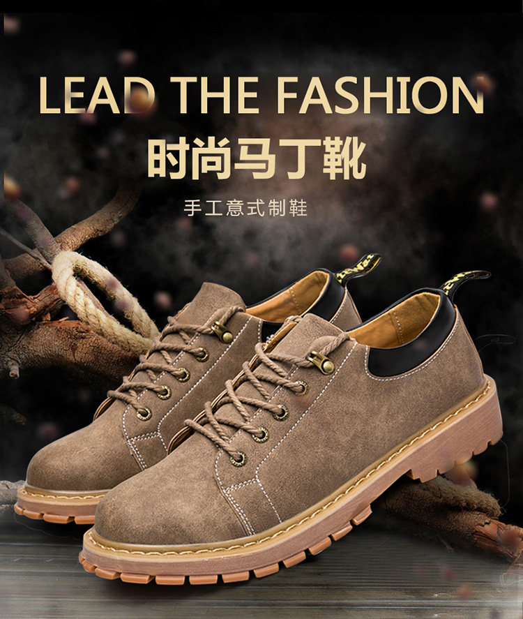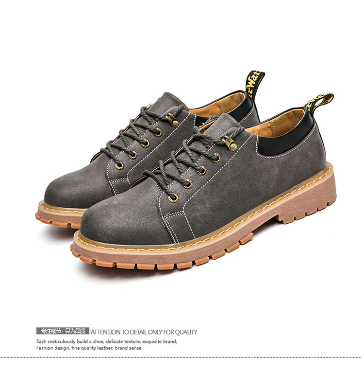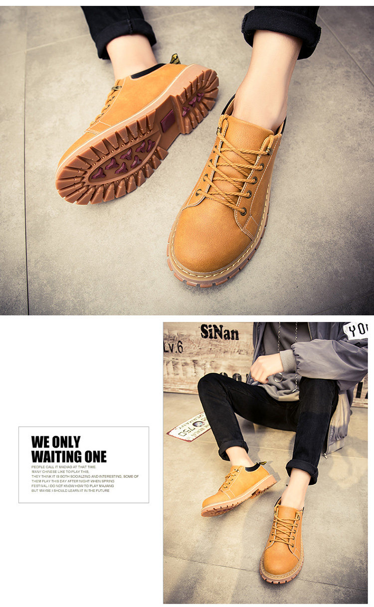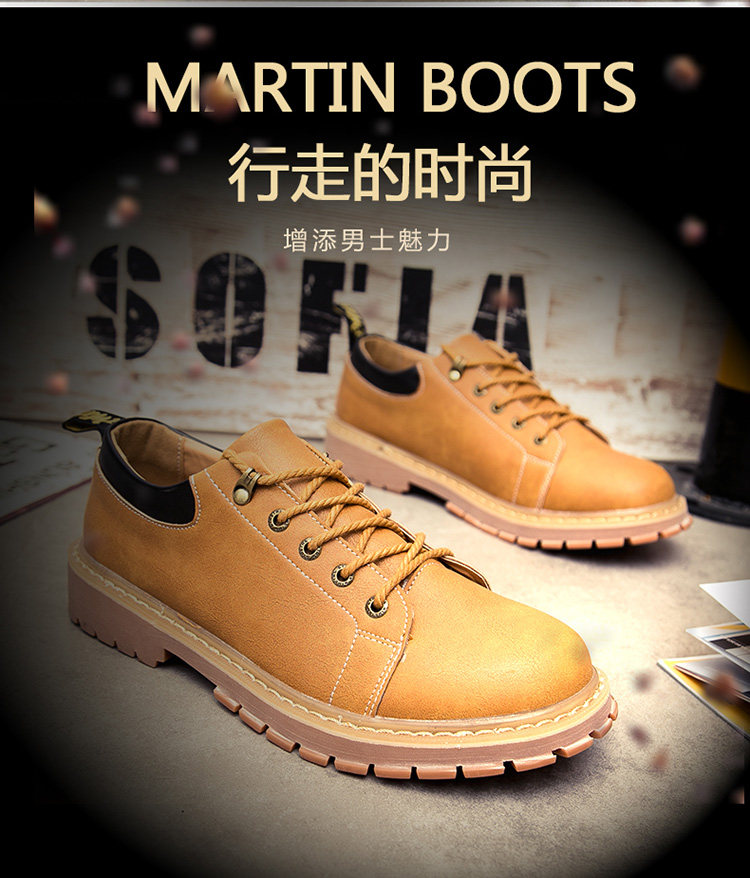 短靴男秋冬大头工装马丁靴英伦百搭低帮休闲鞋男皮鞋复古皮靴子男