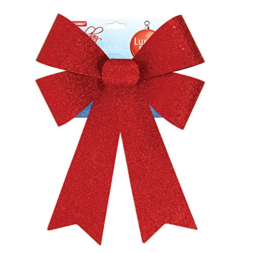 Red Glitter Bow For Holiday season, Christmas and Valentine decorations - Size: 9'' X 15", 2 pc