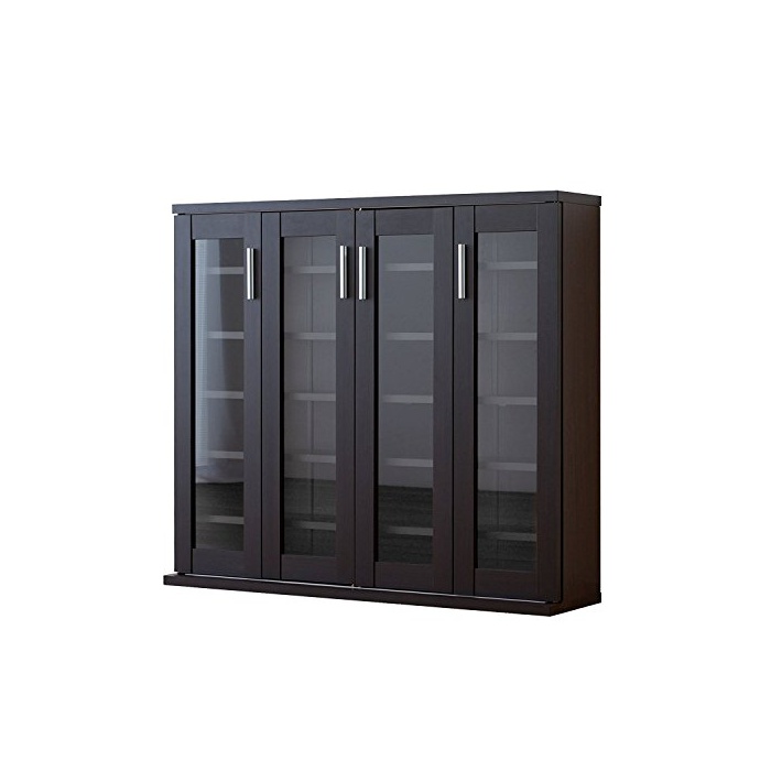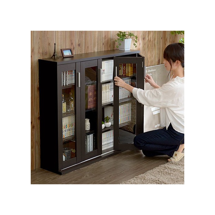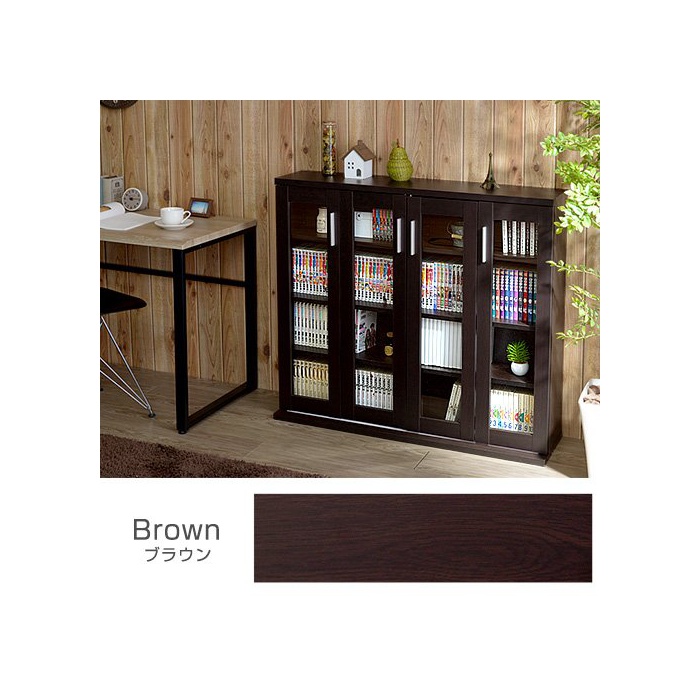 원본상품명: ワイエムワ?ルド ガラス扉付き 本棚 書棚 【色: ブラウン 】 4枚扉 薄型 コミックラック 00-099