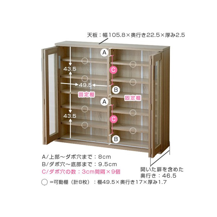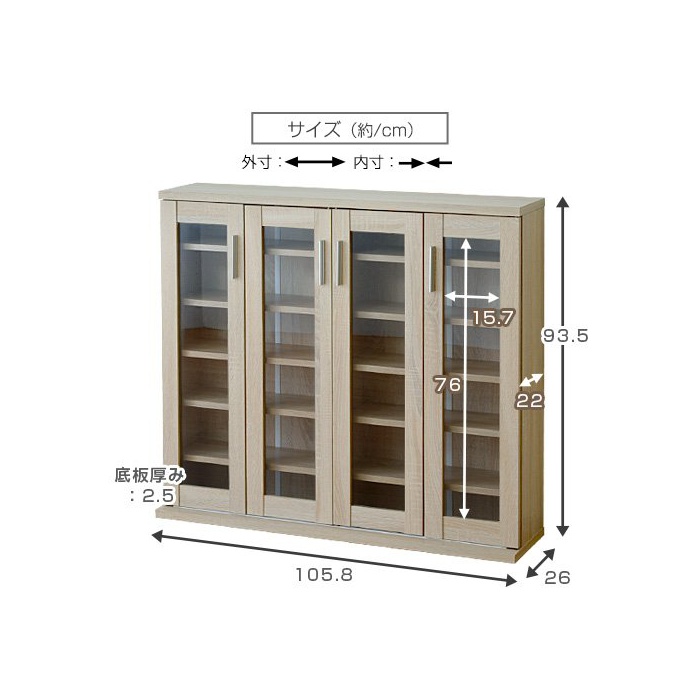 <상품 사이즈>(약)폭105.8cm×(길이)깊이26cm×높이93.5cm <상품 중량>(약)31kg <내하중>(책상이나 카운터의) 널찍하고 평평한 윗부분:(약)10kg 가동붕:(약)5kg