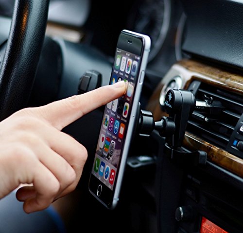 IT'S THE LAST CELL PHONE MOUNT YOU'LL EVER BUY Finally, an easy way to keep your cell phone securely in one place - no matter how fast you turn or stop. It's the Magnet-i-Car universal car phone holder. FITS ANY PHONE, MP3 PLAYER OR MINI-TABLET Mount any device up to 1 lb. -- even in a slim line case. MAINTAIN FULL ACCESS TO YOUR DEVICE AT ALL TIMES With no cradle to block your screen or the side buttons on your phone, you'll always have use of your features. VIEW YOUR PHONE FROM THE PERFECT ANGLE With our 360-degree rotation, you can adjust to the exact angle you need. USE UP TO TWO DEVICES AT ONCE Your Magnet-i-Car even comes with two metal plates so you can use it for another phone, an mp3 player, even a mini-tablet - anything up to 1 lb. IT'S THE WORLD'S SIMPLEST INSTALLATION Just put the adhesive metal plate on the back of your phone or slim line phone case. Then follow the directions to mount the Magnet-i-Car holder onto your horizontal vent -- it won't block the air. Put your phone against the phone holder, adjust the viewing angle and you're done. To remove your phone, just pull it away. It's that simple! NO OTHER CELL PHONE HOLDER CAN COMPETE Unlike our competitors, our phone mount has: - NO SILICONE SUCTION MOUNTS -- Suction cups fail with age, dust and extreme temperatures, damaging your dashboard -- and your phone when it falls - NO CRADLE TO BLOCK ACCESS TO YOUR PHONE -- Access any part of your screen and the side buttons on your phone anytime - NO BREAKAGE -- Our holder grips your phone with powerful magnets, so it's more durable by design - NO LIMITATIONS ON THE MODEL OF YOUR PHONE - Your phone will fit no matter what phone you have now -- or in the future 100% GUARANTEED - HASSLE-FREE We offer a full year guarantee against manufacturing defects because your satisfaction is our top priority. CLICK THE "BUY" BUTTON TODAY. AND BUY THE LAST CELL PHONE HOLDER YOU'LL EVER NEED.
