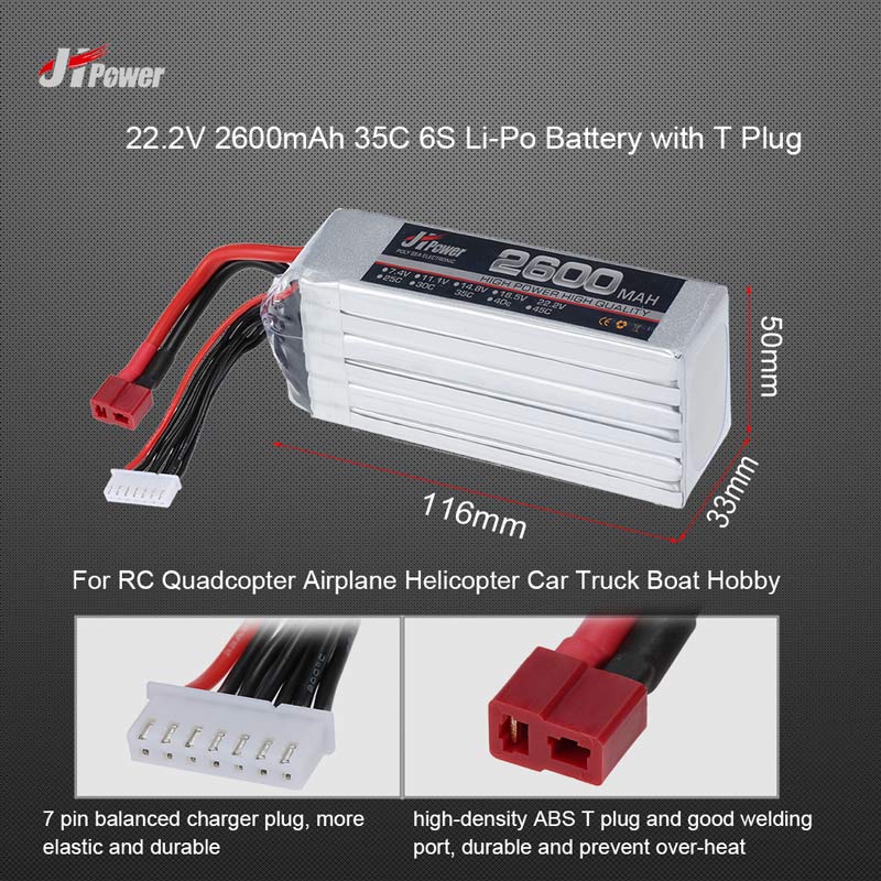 This high quality 22.2V 2600mAh 35C 6S liPo battery is just designed for RC super fans. It's suitable for RC drone airplane car truck hobby. Good choice for you to enjoy more flying joys.