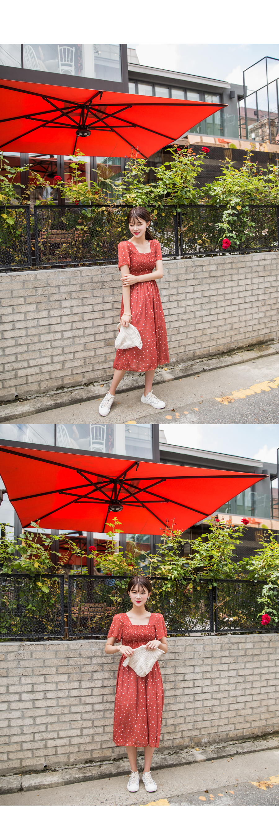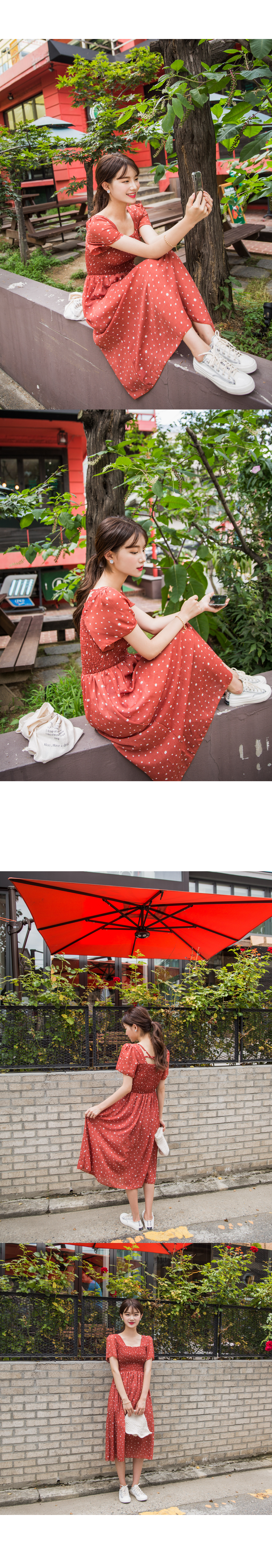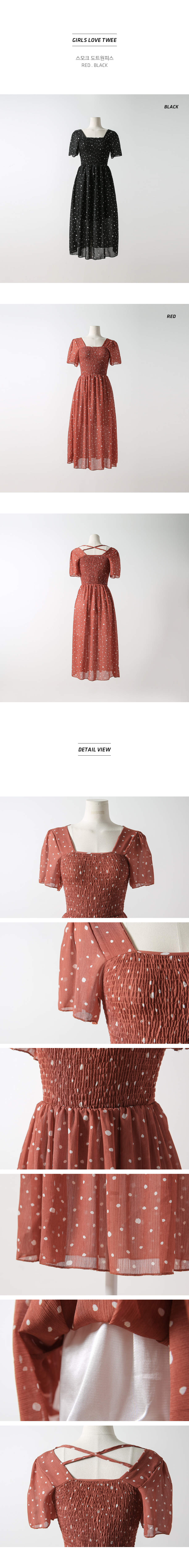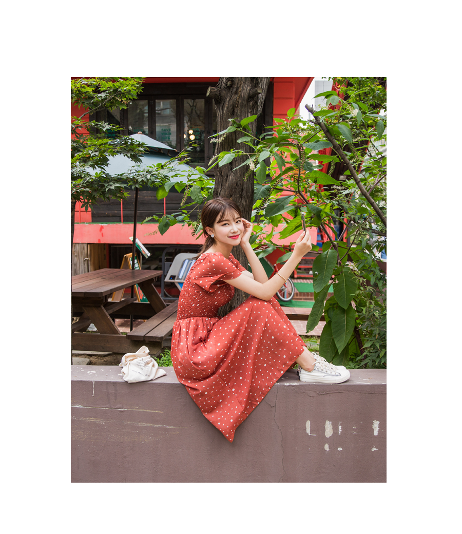 MD COMMENT걸리시하면서도 러블리한무드의도트원피스 입니다 전체적으로 바디라인에 맞게 떨어지는 실루엣으로 44~66 고객님 추천해드리구요 스퀘어 네크라인으로 여리여리한 목선을 연출해주며 숄더라인과 바스트 아랫단을 스모크로 처리하여 허리?인을 슬림하게 딱 잡아주어불편함없이 편안하게 착용하실 수 있어요 도트패턴으로 캐주얼한 룩부터 페미닌한 룩까지 완성되어 휴양지에서도 활용하시기좋은 아이템이에요!