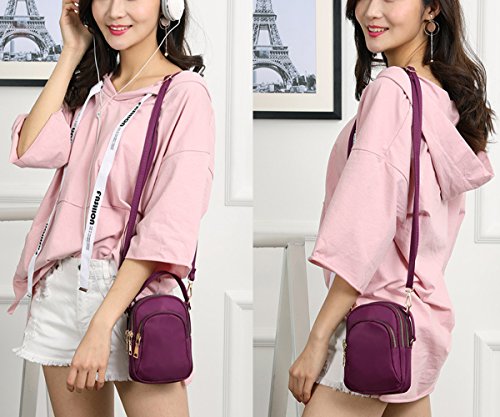 Eilova 3-Layer Zip Crossbody Bag Cell Phone Purse Wallet Nylon Handbag for Women