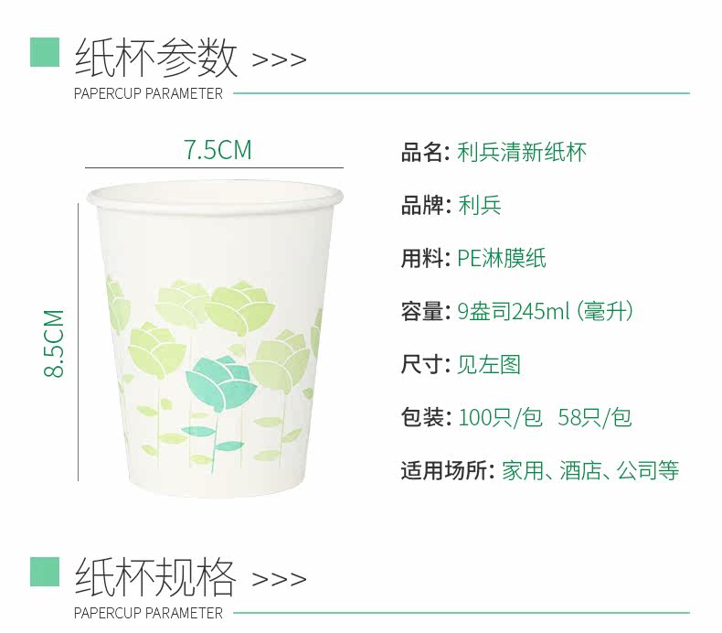 办公室家庭增厚防渗漏纸杯9盎司 居家一次性饮水杯245ML