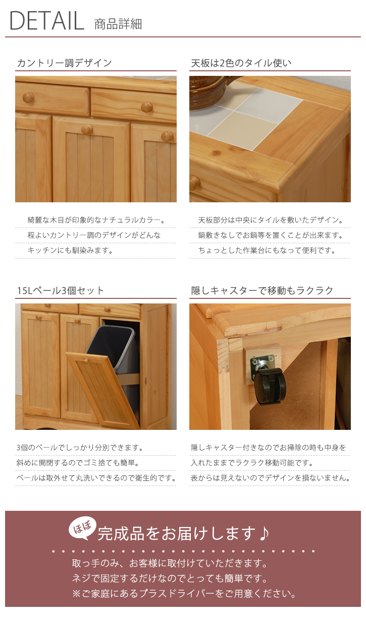 ■ 引出内寸:(約)幅29×奥行26×深さ6cm■ 15リットルペール3個付き■ キャスター付き